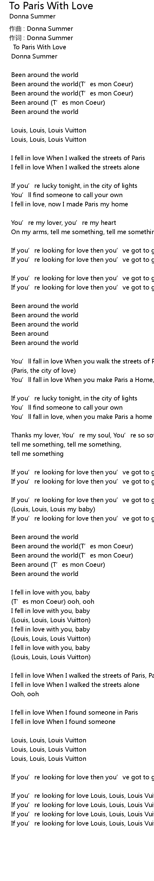 | If you' re looking for love then you' ve got to go to Paris, Paris | |