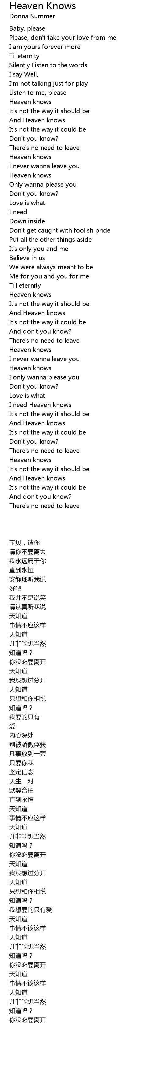 I need Heaven knows |