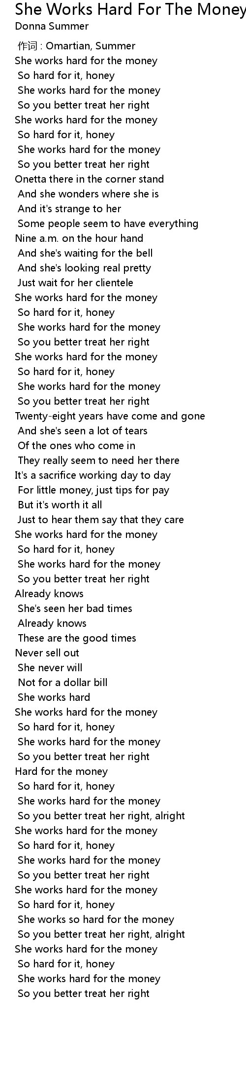 | [00:45.64] | She works hard for the money |