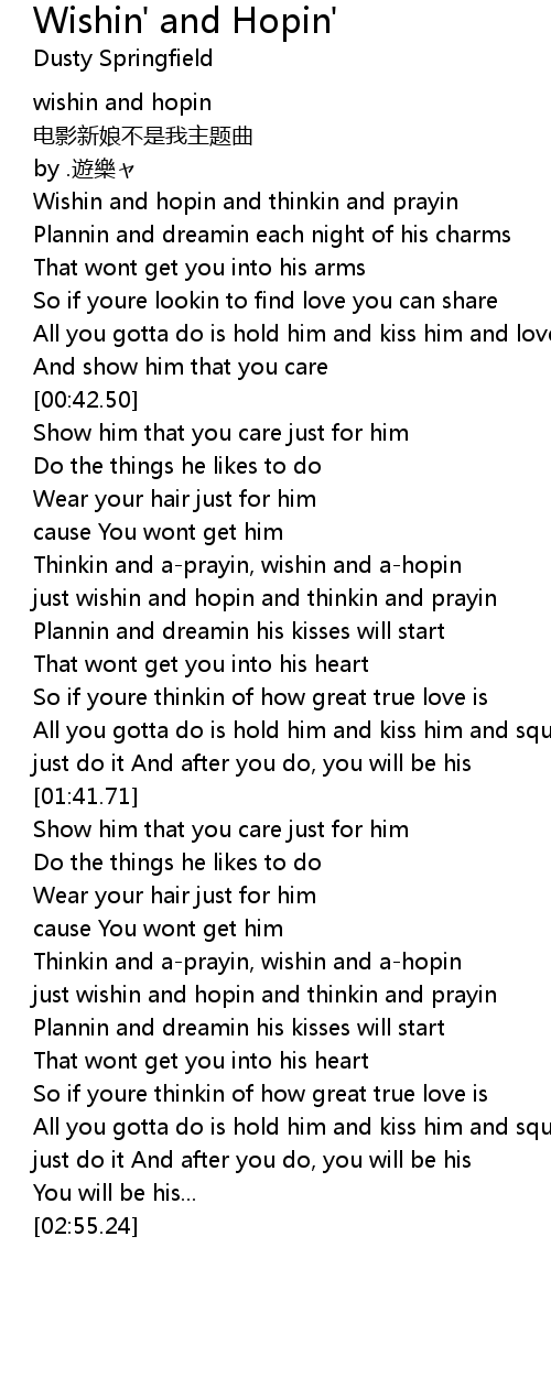 | [01:59.97] | Thinkin and aprayin, wishin and ahopin |