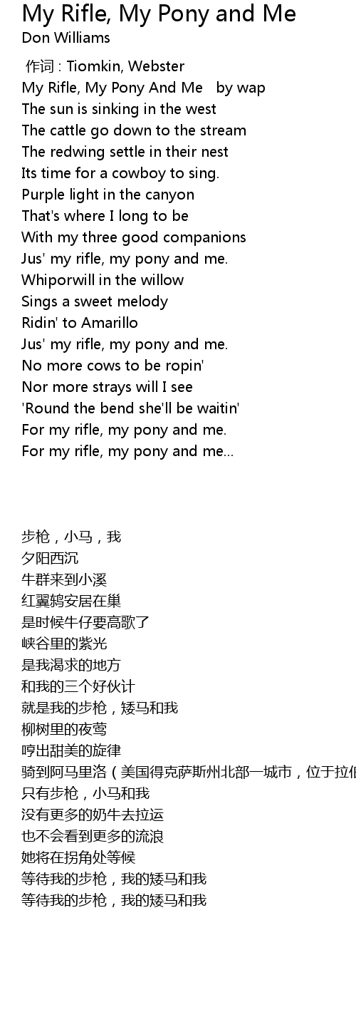 | [01:39.93] | For my rifle, my pony and me. |