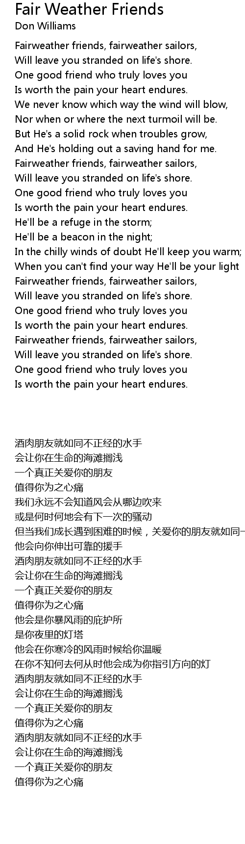 Fairweather friends, fairweather sailors, |