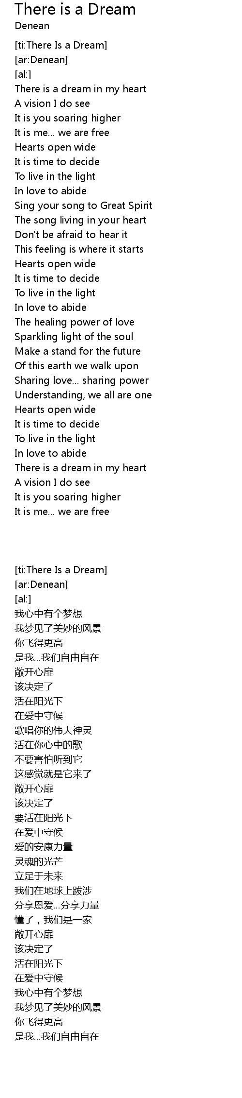 [ti:There Is a Dream] |