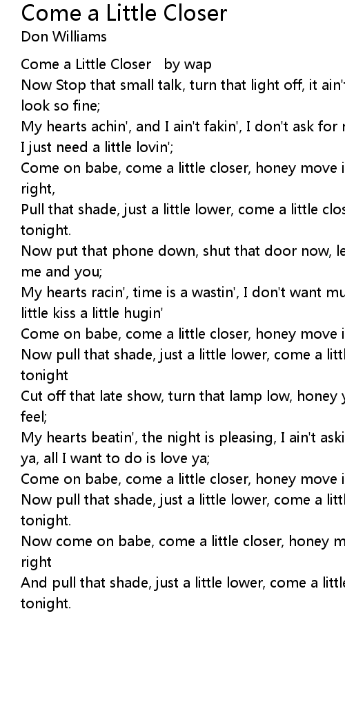 Come a Little Closer by wap |