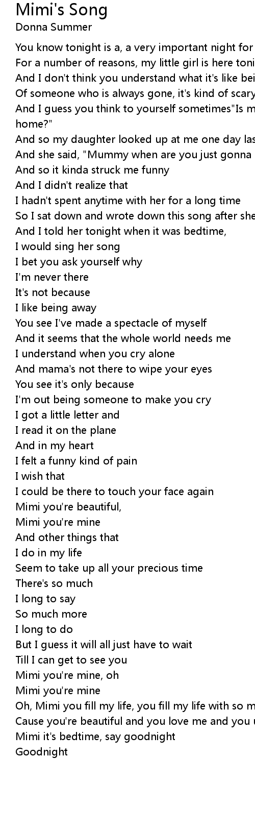 Oh, Mimi you fill my life, you fill my life with so much love' |
