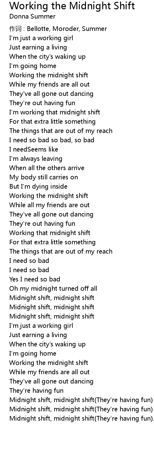 | Midnight shift, midnight shift | |