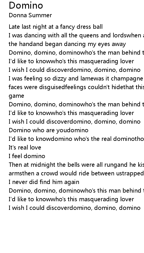 I'd like to knowdomino who's the real dominothough we're strangers still |