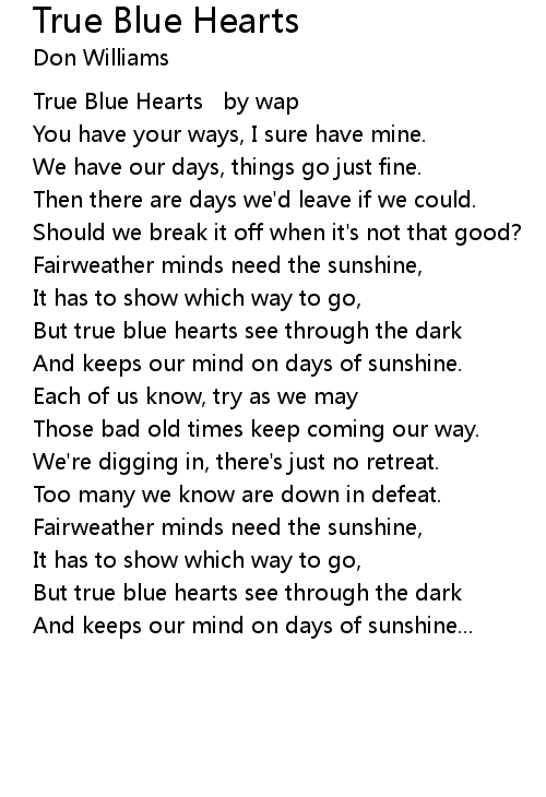But true blue hearts see through the dark |