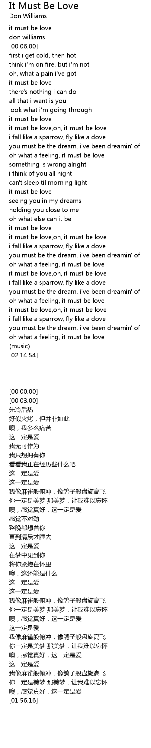 it must be love,oh, it must be love |