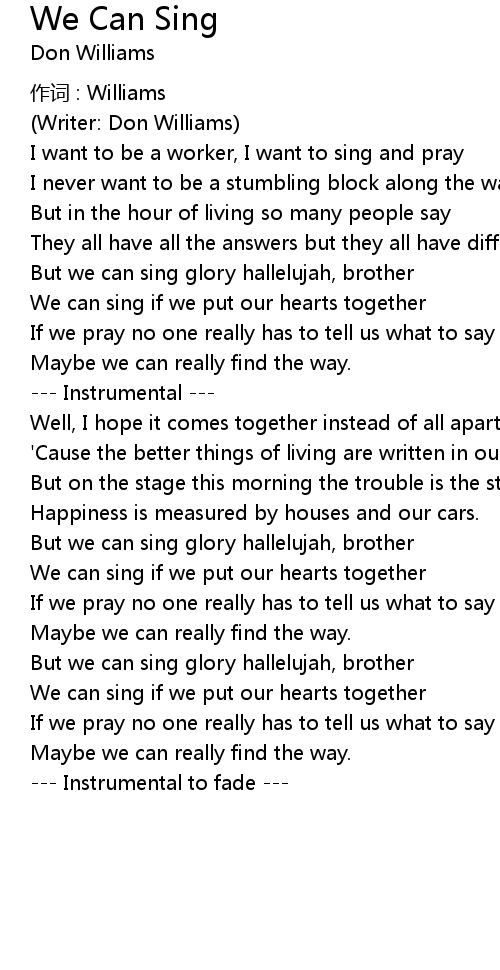 | We can sing if we put our hearts together | |
