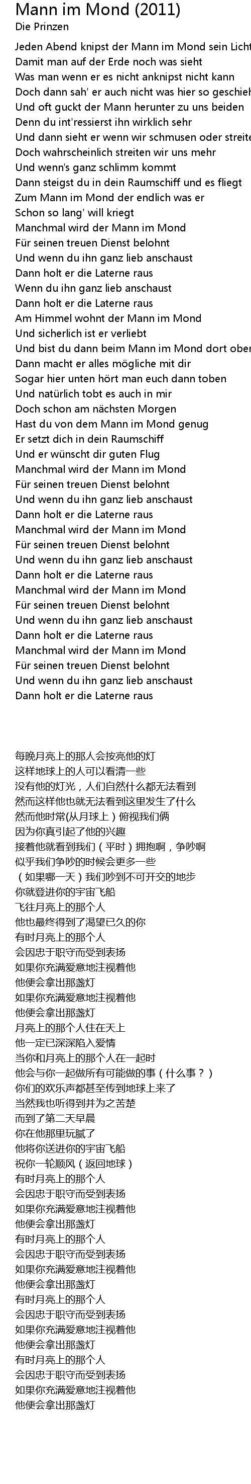 | [01:32.17] | Und bist du dann beim Mann im Mond dort oben |