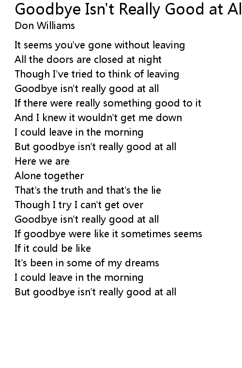 But goodbye isn't really good at all |