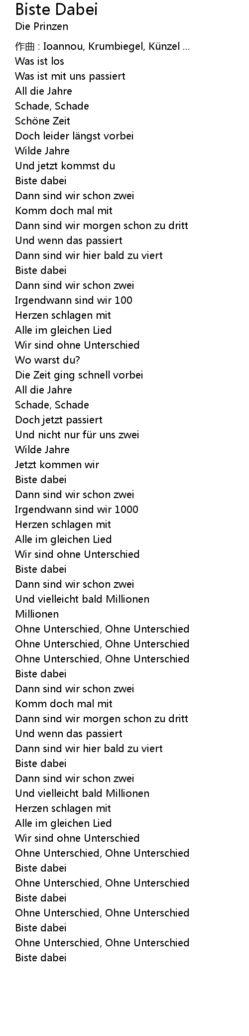 | Alle im gleichen Lied | |