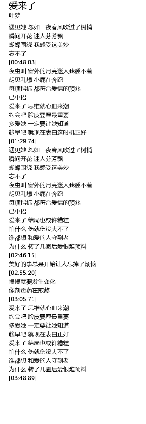 | [03:26.56] | 爱来了 结局也或许糟糕 |