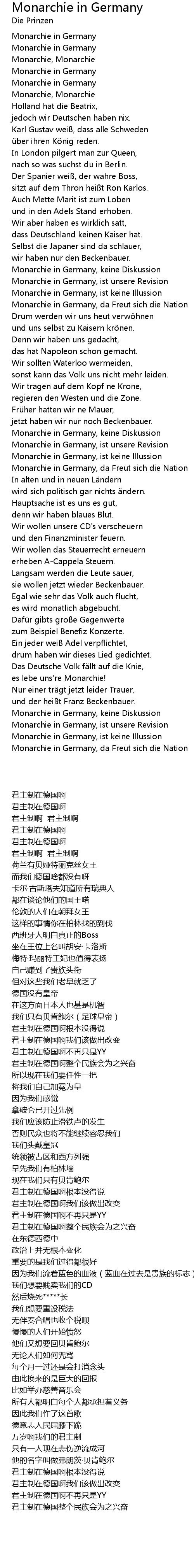 | [01:15.72] | Monarchie in Germany, da Freut sich die Nation |