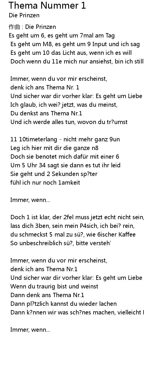 | denk ich ans Thema Nr. 1 | |