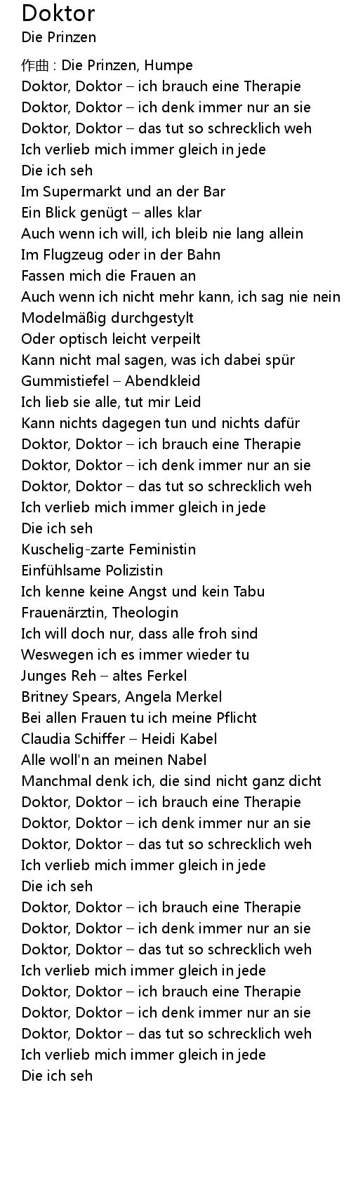 | Doktor, Doktor ich denk immer nur an sie | |