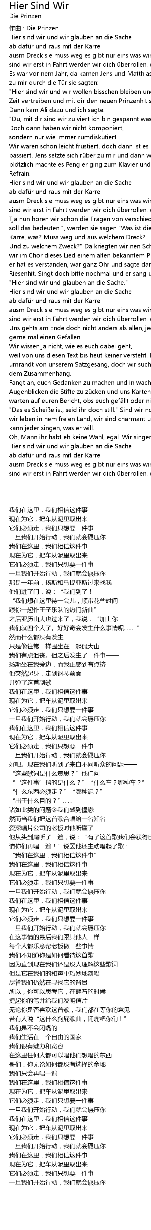| Zeit vertreiben und mit dir den neuen Prinzenhit schreiben." | |