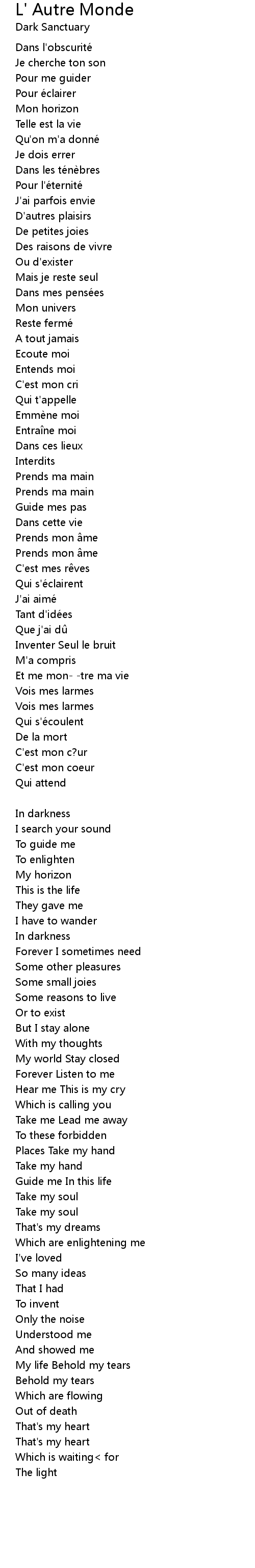 | Dans l' obscurite | |