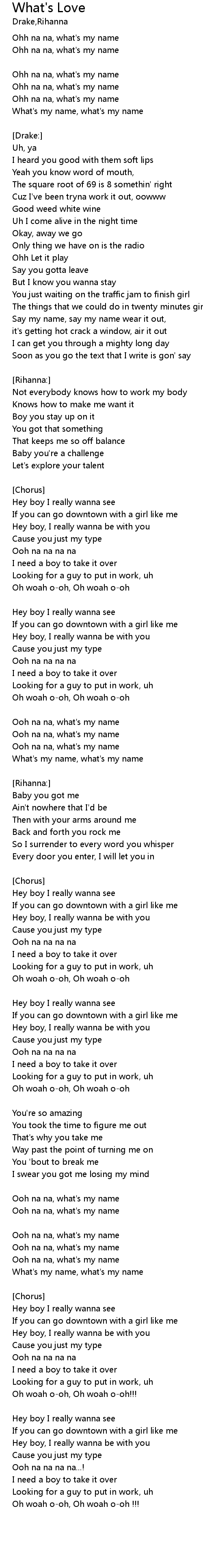 | What's my name, what's my name | |