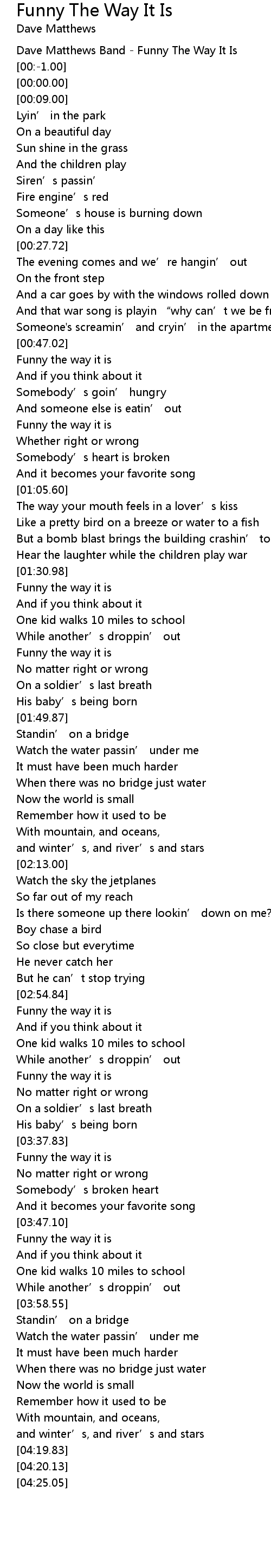 | [00:-2.00] | Dave Matthews Band Funny The Way It Is |