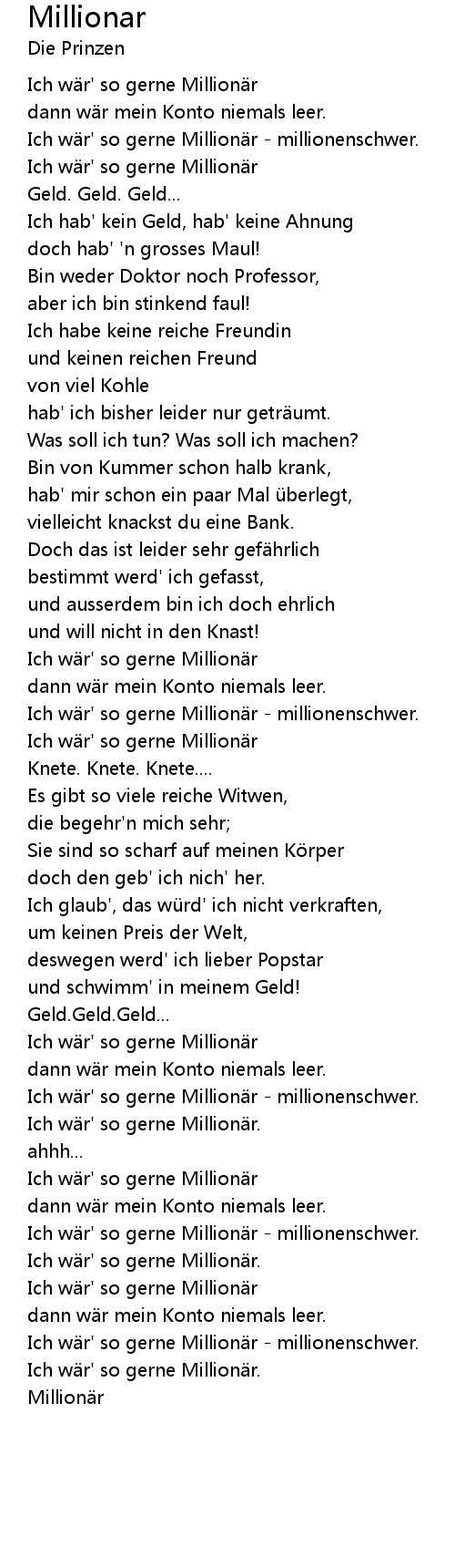 | Ich wär' so gerne Millionär - millionenschwer. | |