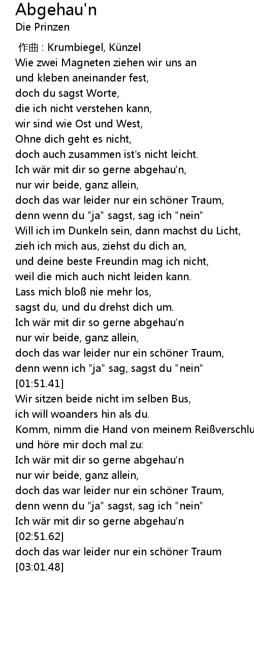 | [01:46.52] | denn wenn ich " ja" sag, sagst du " nein" |