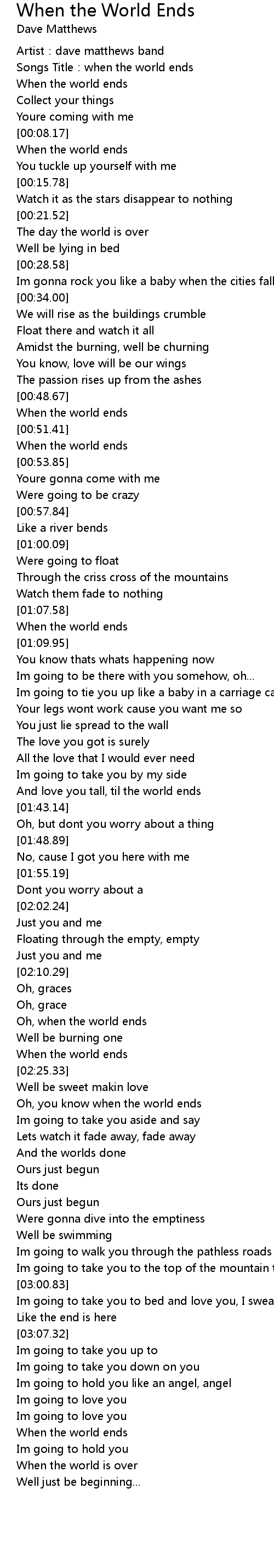 | [03:22.69] | When the world ends |