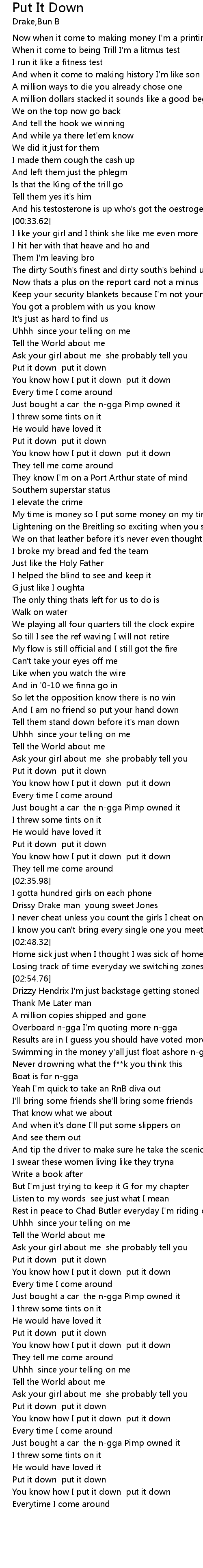 | [03:01.33] | Overboard n-gga I'm quoting more n-gga |