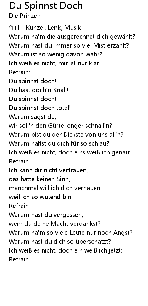 | Song | Du Spinnst Doch |
