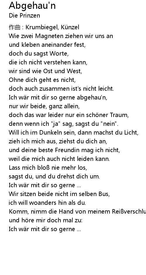 | Ich wär mit dir so gerne abgehau'n, | |