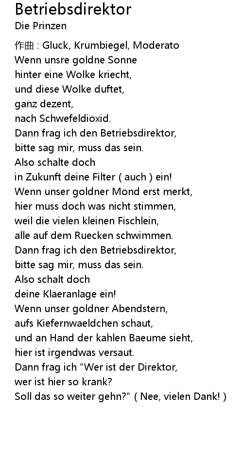 | Dann frag ich den Betriebsdirektor, | |