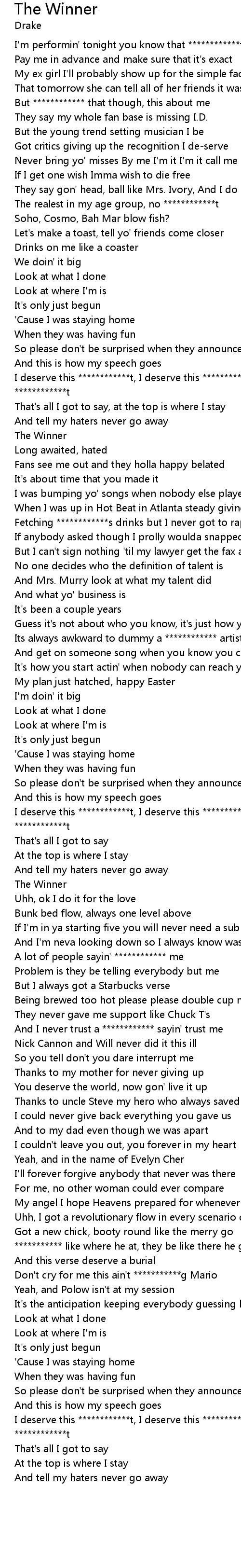 That's all I got to say, at the top is where I stay |