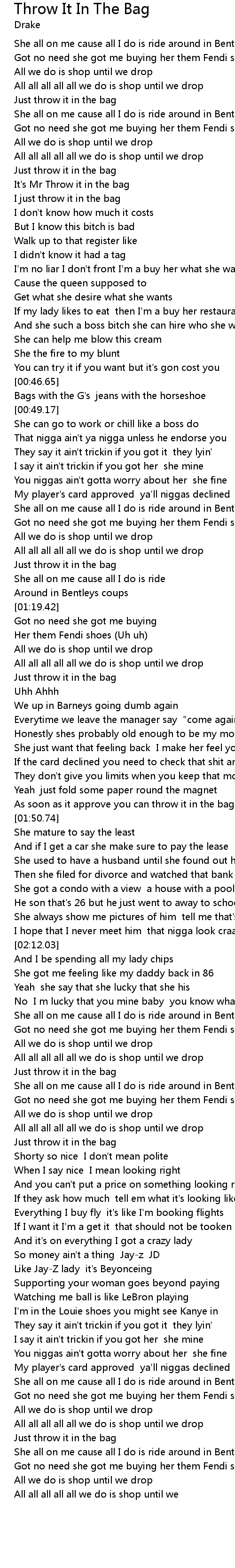 She all on me cause all I do is ride around in Bentleys coups |