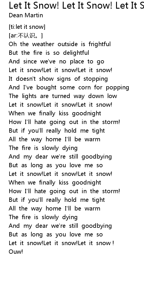 | [01:41.530] | Let it snow! Let it snow! Let it snow ! |