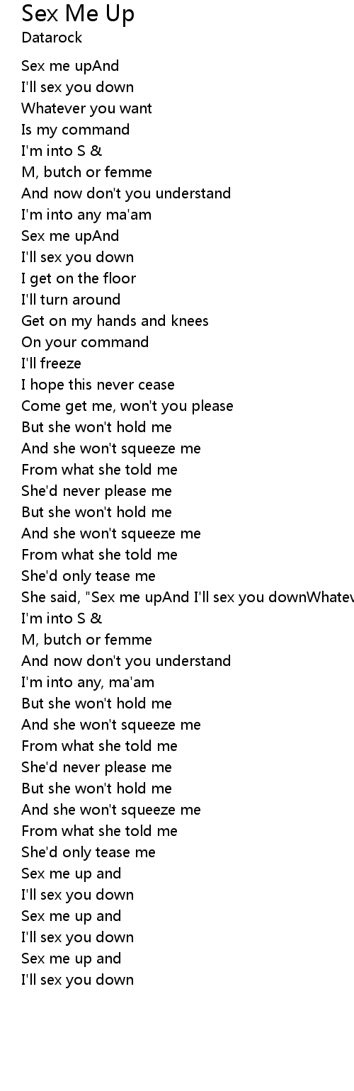 She said, "Sex me upAnd I'll sex you downWhatever you wantIs my command" |