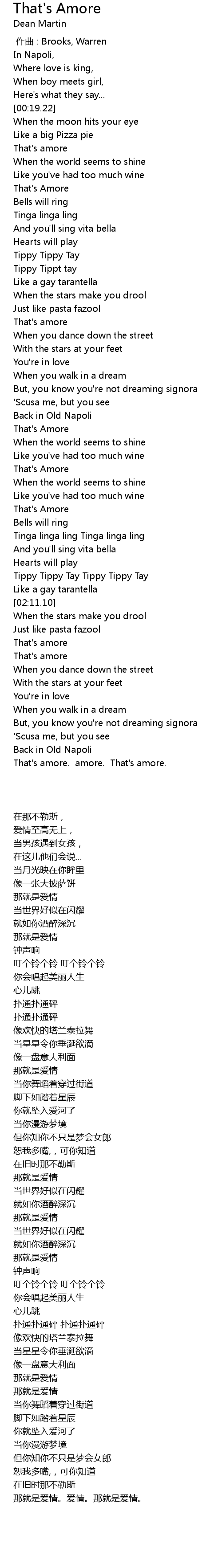 | [02:55.59] | That' s amore. amore. That' s amore. |