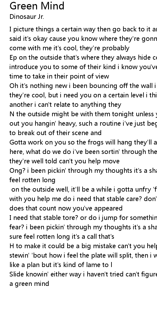 I picture things a certain way then go back to it another day the green mind said it's okay cause you know where they're gonna be all's you have to do is come with me it's cool, they're probably |