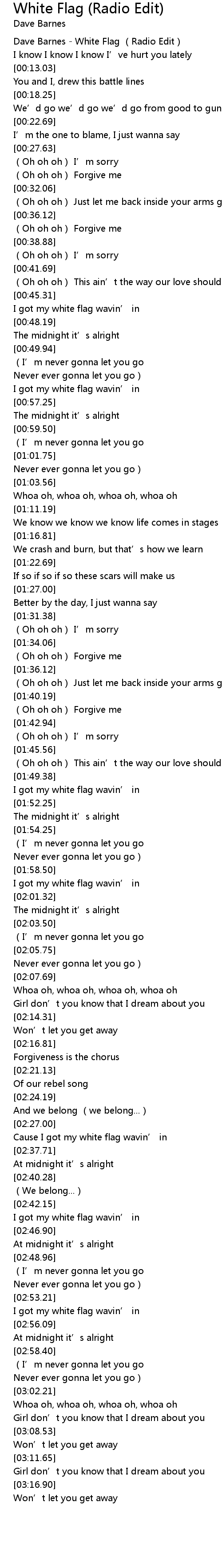 | [00:00.53] | Dave Barnes White Flag Radio Edit |