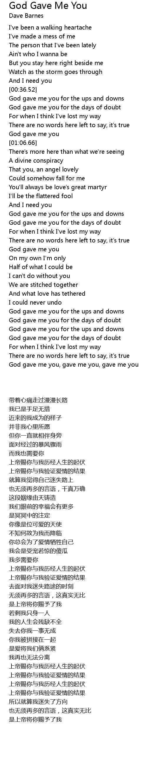 God gave me you, gave me you, gave me you |