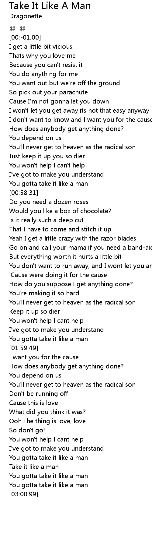 Take It Like A Man Lyrics