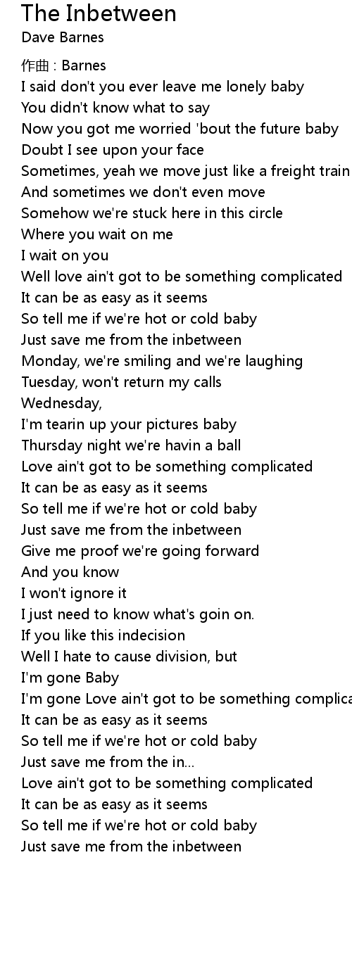 | Just save me from the inbetween | |