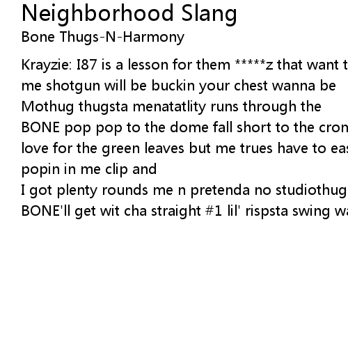 | Song | Neighborhood Slang |