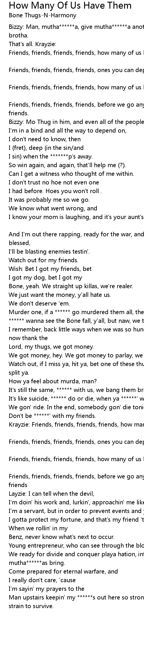 Krayzie: Friends, friends, friends, friends, how many of us have them? [How many of us have them?] |