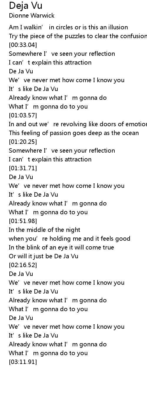 | [03:01.42] | It' s like De Ja Vu |