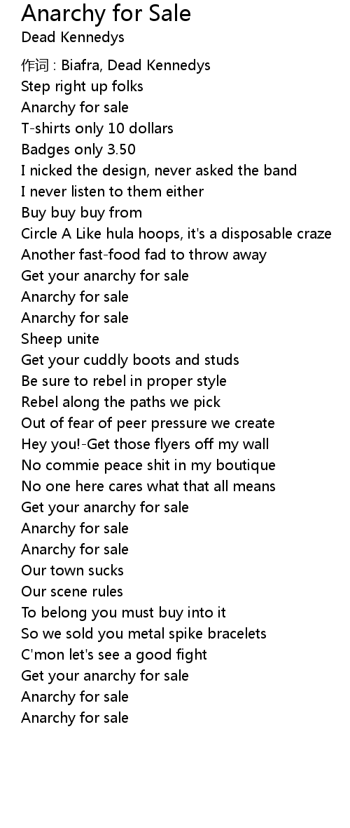 | Song | Anarchy for Sale |