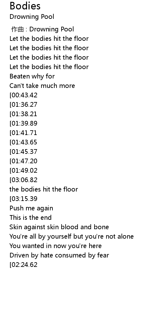 | [00:02.42] | Let the bodies hit the floor |