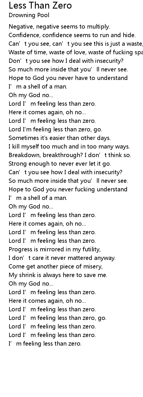 | Lord I' m feeling less than zero. | |