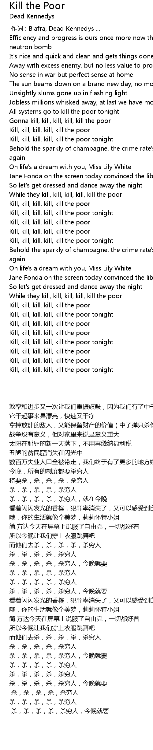 | [00:59.060] | Kill, kill, kill, kill, kill the poor |