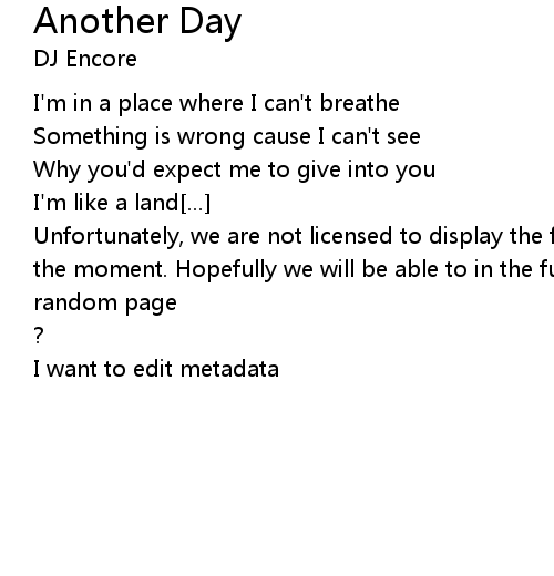 | Unfortunately, we are not licensed to display the full lyrics for this song at the moment. Hopefully we will be able to in the future. Until then, how about a | |